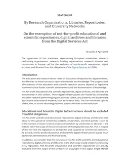 Statement on the exemption of not-for-profit educational and scientific repositories, digital archives, and libraries from the Digital Services Act