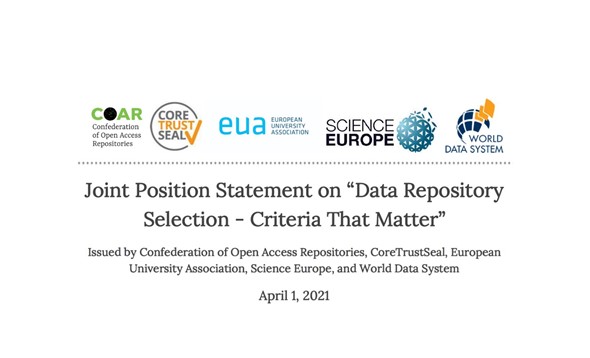 Science Europe issued a Joint Position Statement with COAR, CoreTrustSeal, the European University Association, and the World Data System to highlight the community’s concerns over the Data Repository Selection Criteria recommendations.